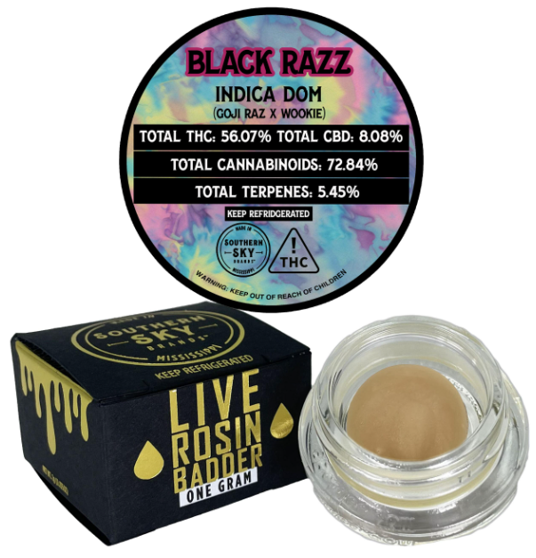 "This product is Live Rosin. We harvested and froze our in-house, indoor-grown flower. We washed that flower in ice water and dried the resulting Bubble Hash in a pharmaceutical-grade freeze dryer. The only time this Bubble Hash was ever exposed to room temperatures was when we loaded it into a micron bag and pressed it between two hot plates. We collected the extruded product - Rosin - and loaded it into jars. This is a solventless product made without chemicals - only water, ice, heat, and pressure. We are excited and proud to bring a high-quality Live Rosin product to Mississippi medical patients." - Charles Thompson, Lab Director for Southern Sky Brands