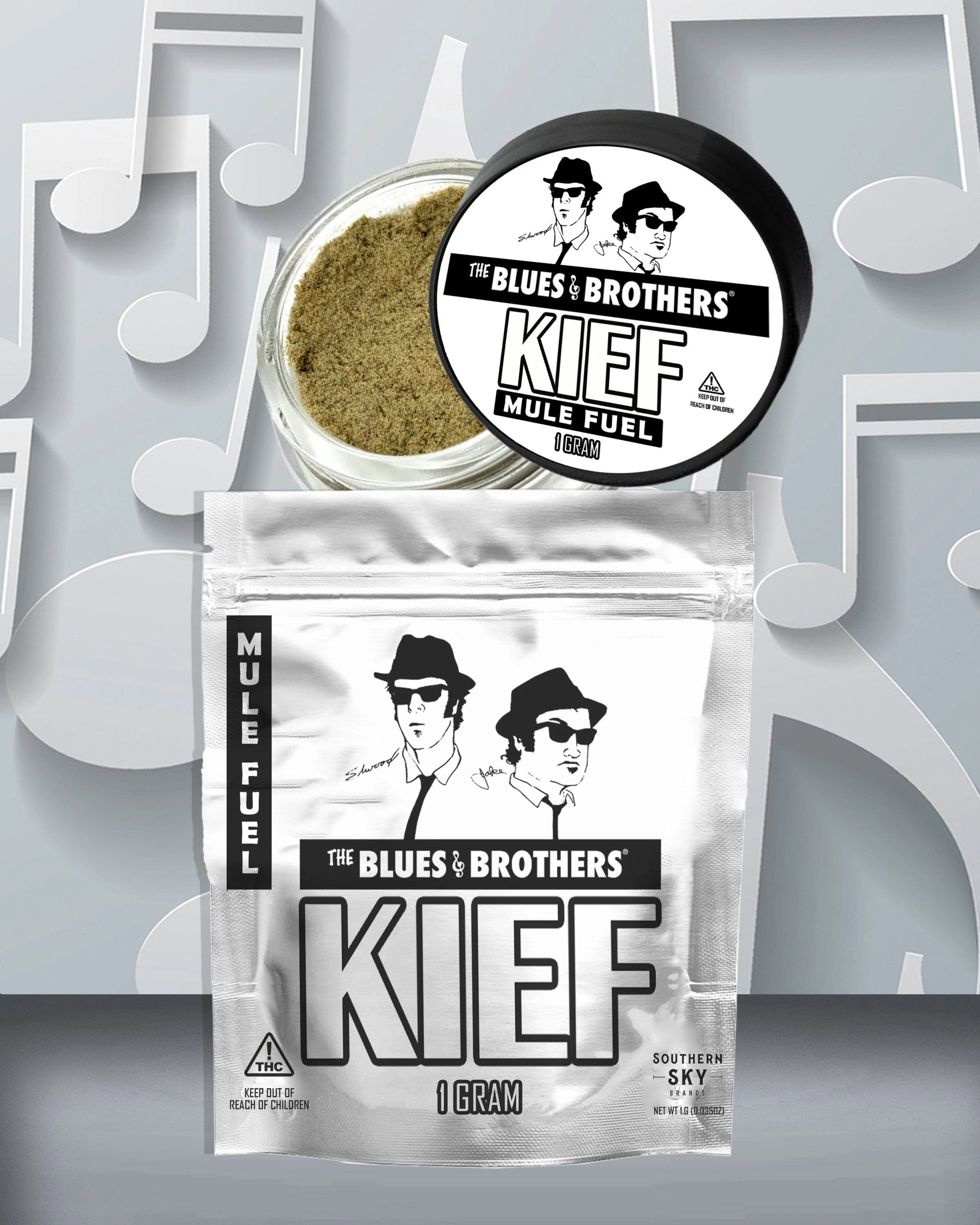 The Blues Brothers strain is sure to melt all of you cares away into the soft, downy, pillow like clouds that hug the Mississippi Delta in the evenings. When the day closes down, then the hours seem to drift, not tick away, is the perfect time to partake of Belushi Farm’s “The Blues Brothers”, grown exclusively at Southern Sky Brands. This strain is a cross of Dosi (an indica-dominate strain) and Chronic. “Dosi” is glittering with trichomes, brilliant pistils and bright lime green and lavender leaves so it’s a feast of eye candy! Pungent, earthy and sweet with a slight floral funkiness. This has medical-grade body effects. For most people it leads one on a journey of sedative, relaxing, soothing tingling in the face and head that slowly settles down into the body. The chronic’s effects are more to relieve stress and depression in most users. Flavor profile of sweet honey, floral and a note of spice at the end. Combine these for the ultimate end of day smoke and slide into the slow Mississippi Delta. Genetics: Muel Fuel (Lurch x GMO)