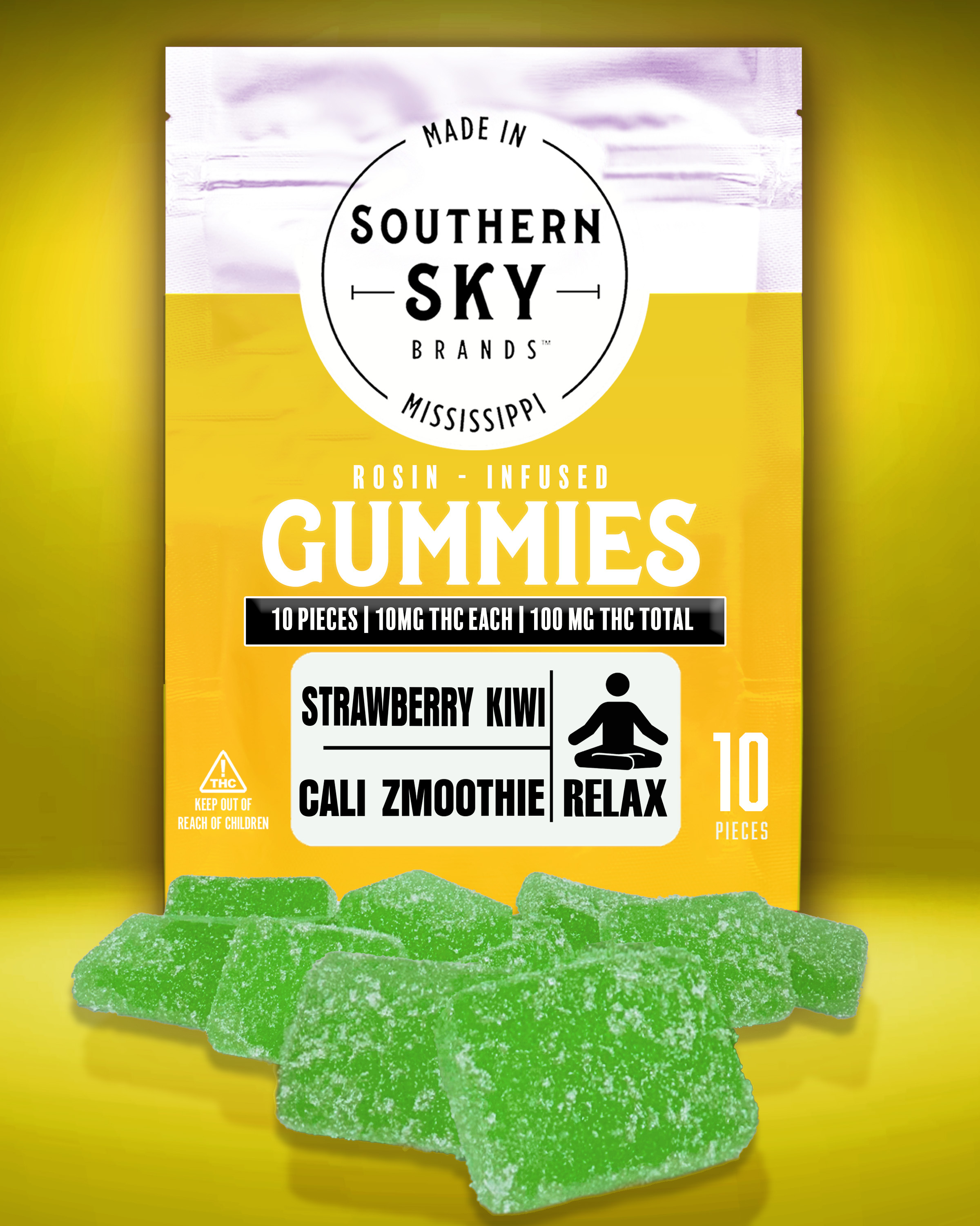 These live rosin edibles are solventless, using our Cali Zmoothie strain to naturally (using only heat, pressure, water, and ice) extract this motivating medicine. This Sativa Dom Hybrid features sweet and fruity flavor profile that is reminiscent of a delicious tropical smoothie. The buds of Cali Zmoothie are dense and resinous with hues of green, purple, and orange, giving it a stunning appearance. Very uplifting!