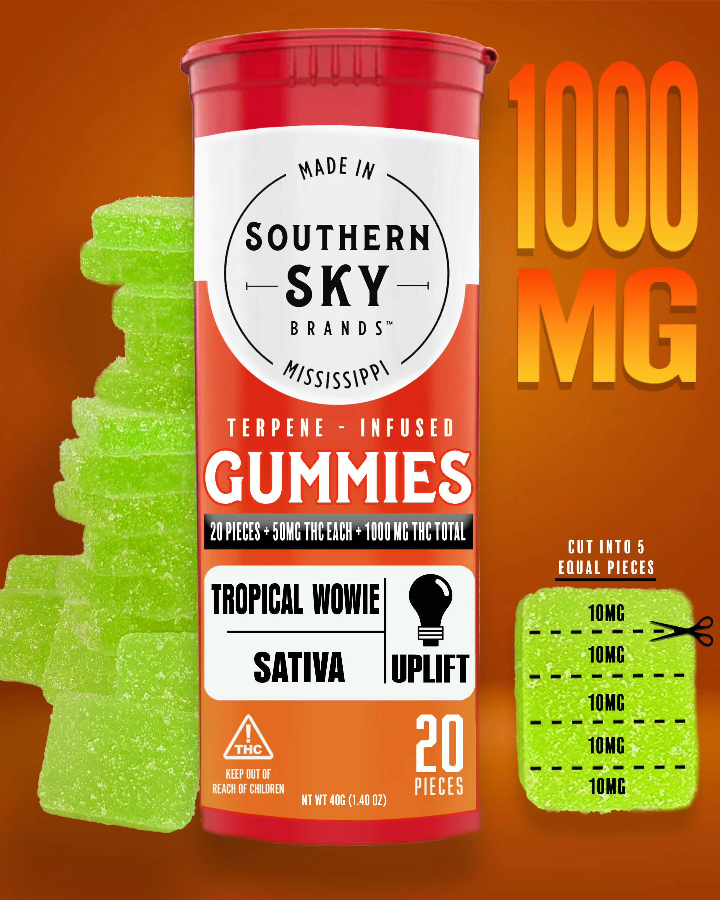 Infused gummies evenly dosed commonly sold in multi-packs, which makes controlling your intake easy and reliable. Absorbed through the stomach and liver, activation time of edibles can be longer than other consumption methods (45 minutes- 2 Hours).These tropical flavored terpene infused gummies highlight limonene, caryophyllene, and nerolidol; great for pain, inflammation, and relaxation.